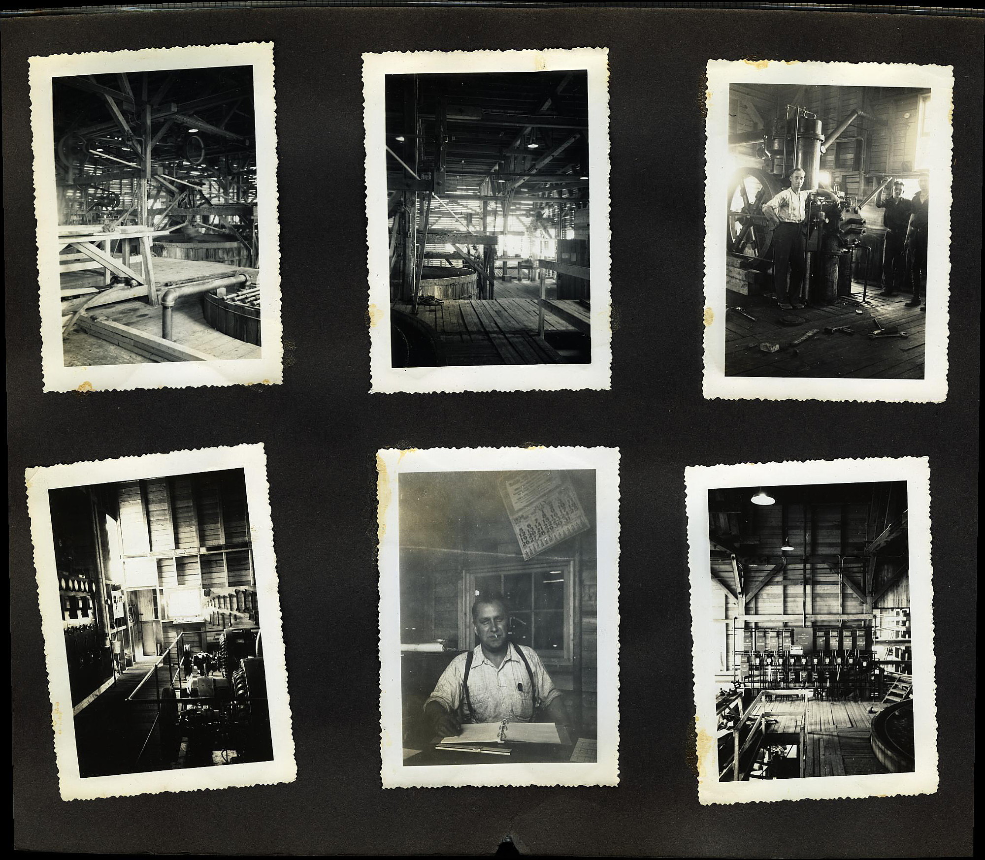 Six photos, all but one showing views of machinery and electrical panels inside what is probably a mill. Top