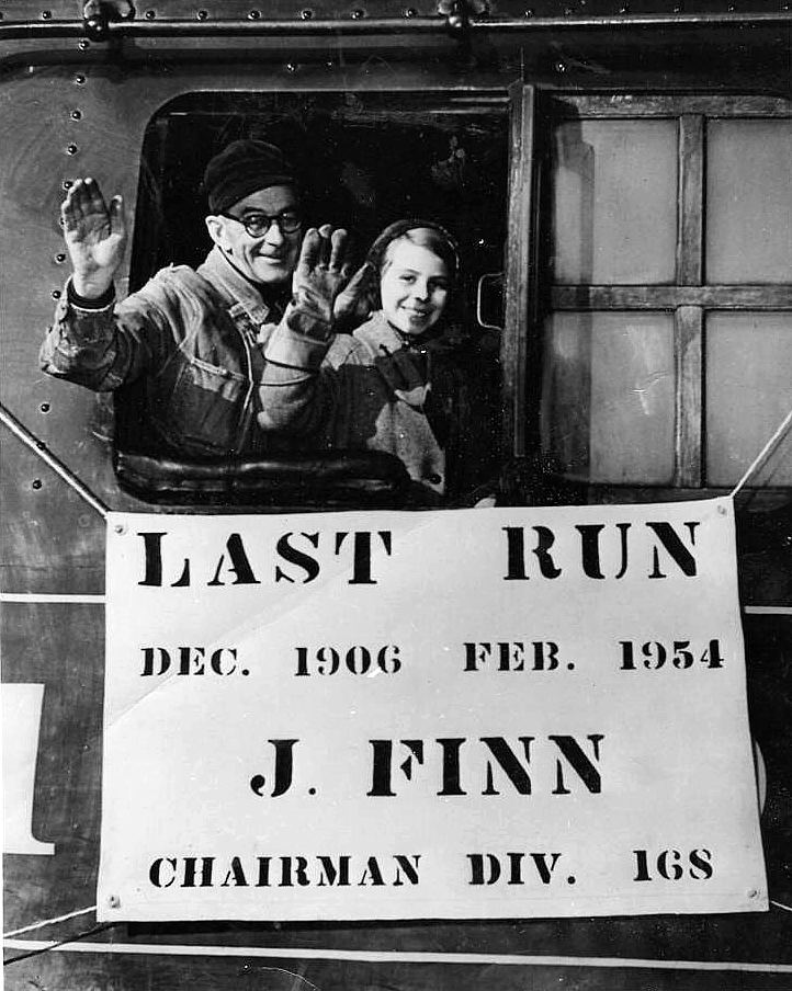 Crowd at Ottawa's Union Station greeting John Finn on his last run in February, 1954.